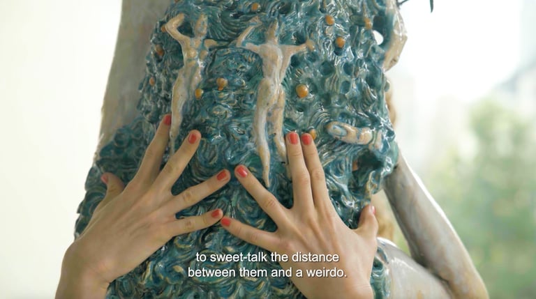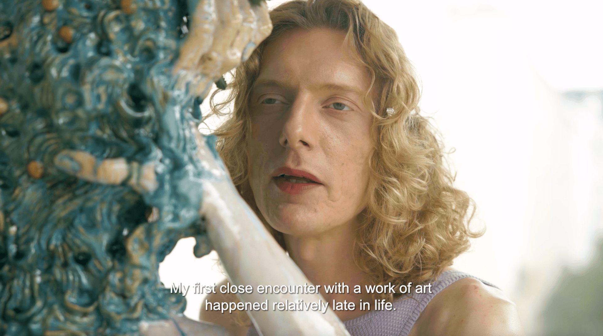 The video presents a dialogue between the artist and a sculptural portrait made by Paweł Althamer, with whom Filipka has long collaborated as an assistant. The portrait depicts her as a mythological figure emerging from sea foam, with the foam symbolizing the fluidity of sexual identity. Filmed at the Foksal Gallery Foundation, the piece shows Filipka interviewing herself, engaging in a conversation with her own artistic incarnation. Blending humor with reflection, she raises philosophical questions about emancipation, visibility, and queer history.
